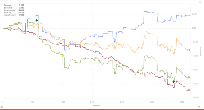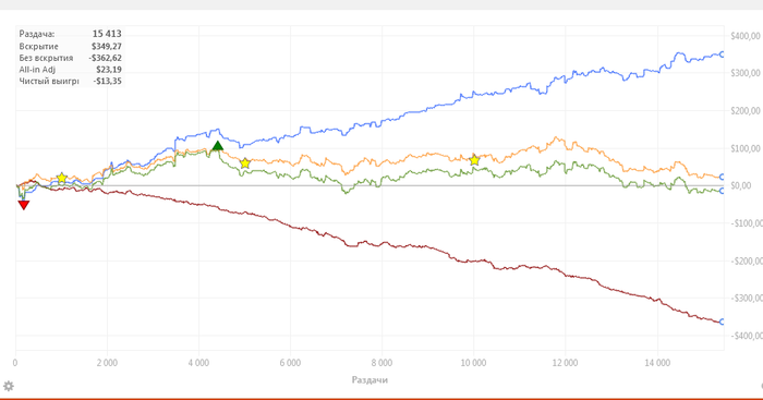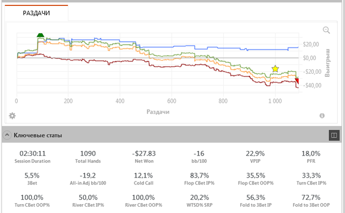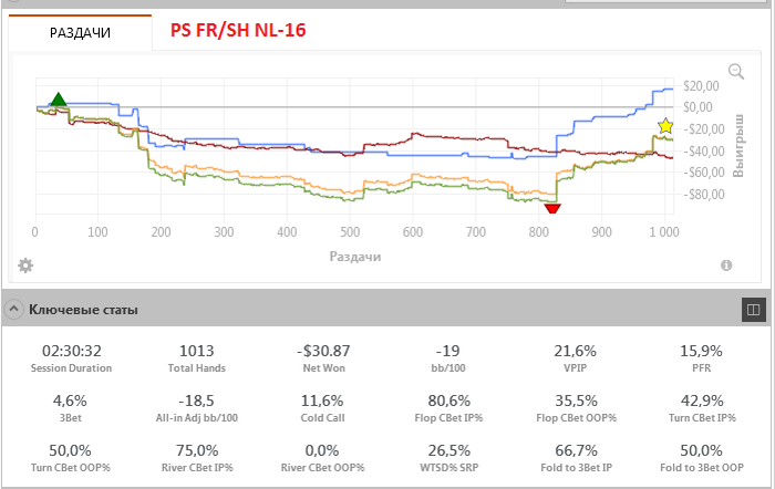 На данный момент нахожусь в отпуске. Во время работы в покер играл по одному часу в день, но до того как устроился на работу в покер играл по 8-10 часов в день на лимите НЛ-5, денег выходило в районе 250$ в месяц на жизнь в моем городе хватало. На лимиты выше перейти не мог, из за того что при переходе на Нл-10 приходилось месяц катать в ноль, а это означало что выводить не чего и платить за жизнь нечем. Во время отпуска задумал прогнать марафон как в старые времена и понять, что в 2021 году я могу заработать находясь на НЛ-10, вывод очевиден: