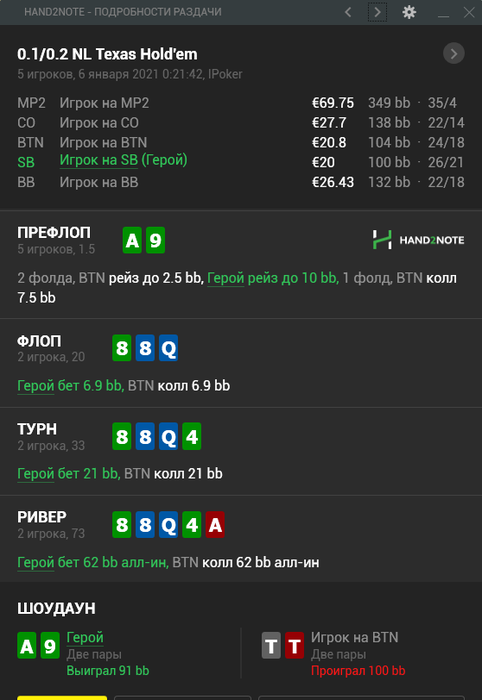 Остается только пожелать успехов в покере!)