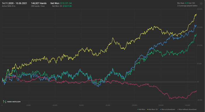 В мае я установил личный рекорд по практике - 151 час, до этого вроде 120 был лучший результат. В июне я аж целых 9 часов отыграл, потому что я заебался играть говносоставы. Но ведь если так посмотреть, то дальше будет только хуже. Порой на лобби нл500 без слез не взглянешь, а если с утреца включить лобби на 1к и выше, то там ваще играют 1 3макс стол на каждом лимите) Кошмар короче.