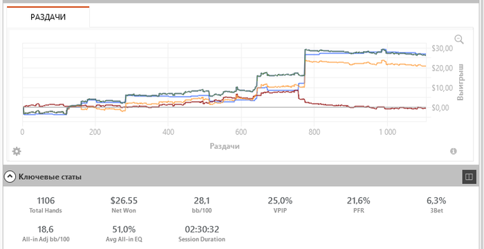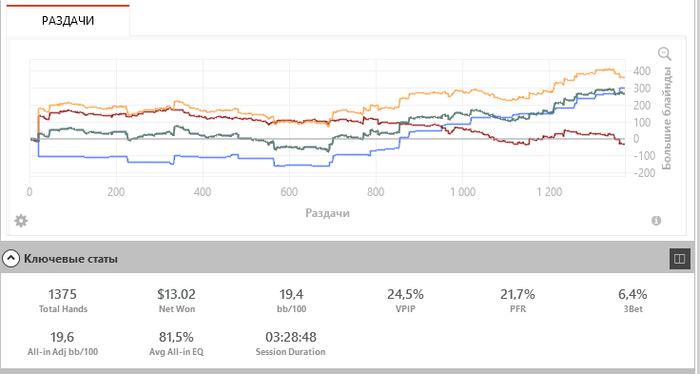 для того чтобы кормить семью . Бр я уже восстановил. К сожалению статистика рук и графиков там не поддерживается и поделиться с вами не могу, но поле радует. Что касается второй и на мой взгляд основной части, то я провожу ее на Poker Stars. . Так вот , после 3х часов катки я начинаю творить какую то дичь