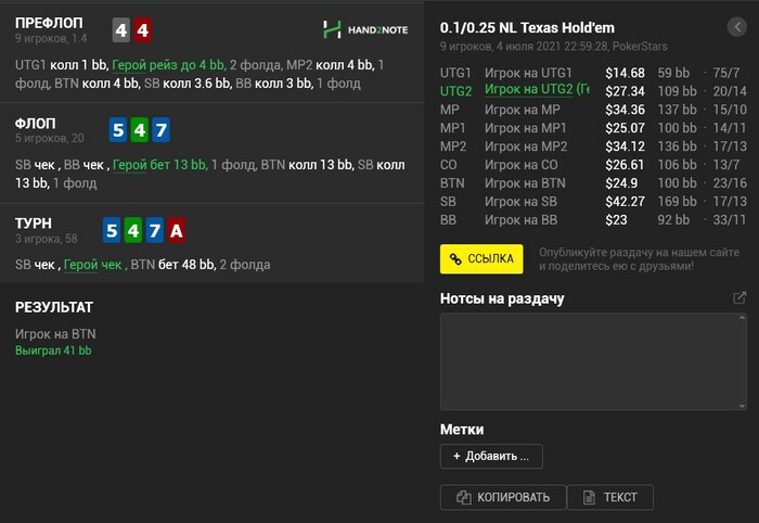 Позавчера катал до утра, тк. надо было в 5:30 проводить одного хорошего человека. Обычно сижу до 02:00 примерно, иначе у меня следующий день вылетает. И вот пока катал сыграл две раздачи с четвёрками, рука вроде бы одна, а ситуации диаметрально противоположные.