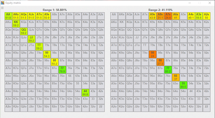 Здесь коллирую на сет-вэлью, МП отморозок который поливает с 2х рук потбетами в каждой раздаче. Справедливости ради замечу что он уже успел к этому моменту отгрузить мне 2 стека и пополнил свои запасы за счёт других оппонентов, то есть между нами сложилась крепкая мужская дружба.