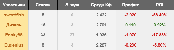 Я, кстати, на турнире по AO статистику вести не готов - особенно с объемами ставок Fonky88 )) Многовато времени уходит все забивать туда и проверять все результаты.