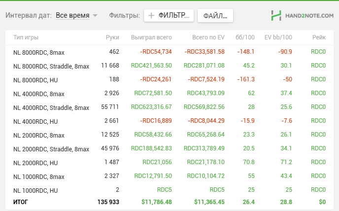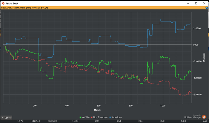 Ну что, вроде откатал пол дня, а по профиту изменений особо никаких) Главный положительный момент сегодняшнего дня это количество отыгранных раздач! Давно столько не откатывал.