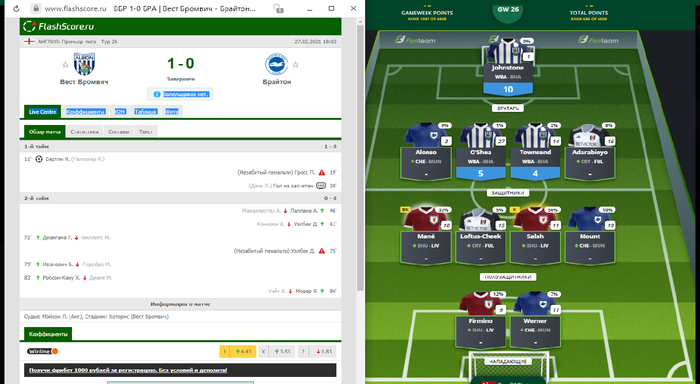 немного не о кабанах а о том, как мне повезло доехать клиншиту в фентези АПЛ 2 незабитых пенальти и отмененный гол, в те ворота, чью защиту ты стекаешь Остальные б матчи так фартило.