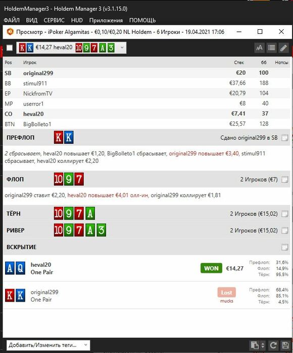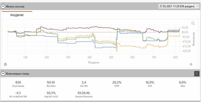 Залезли 3й раз на нл10, утром игра конечно не оч в том плане, что почти одни реги сидят, на мелких лимитах та же ситуация. Тут уже ошибки свои дороже выходят, поэтому максимум аккуратности прилагаю стараюсь но пока еще не все идеально. Но радует, что этот третий раз хотя бы уже не минус)