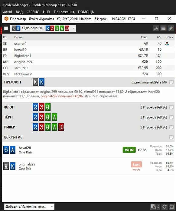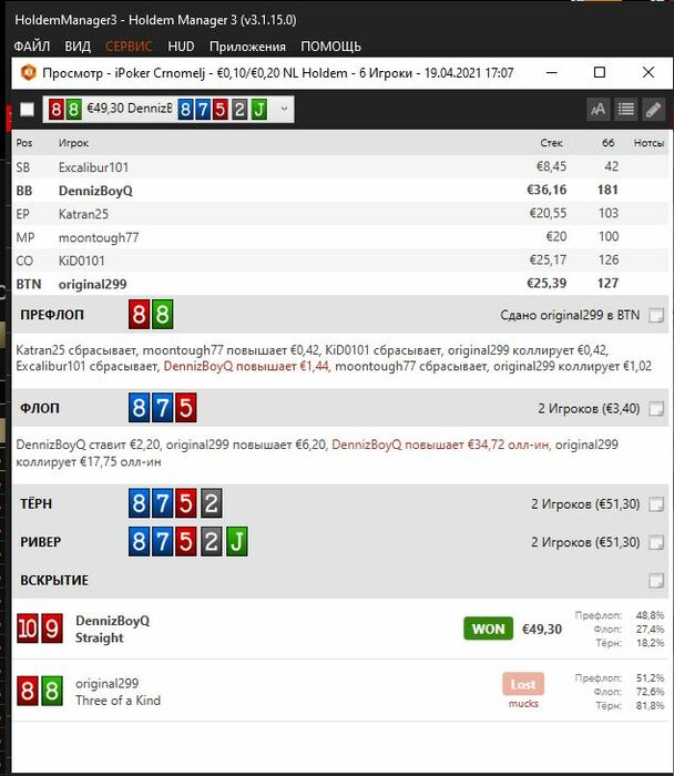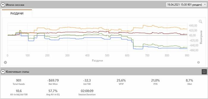 original299, Начинающий игрок и катаешь 10 столов? Оч много) уверен, многие действия получаются необдуманные и на автомате. Гнаться за 5еврами и не играть в свою А игру - считаю плохой идеей.