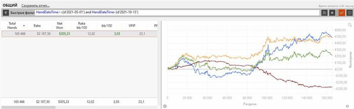 1. Отыграть 30к рук, в идеале 40к рук Отыграл 46к рук с винретом 4.7/bb100 Кол-во рук-хор.результат, винрейт-ужасный