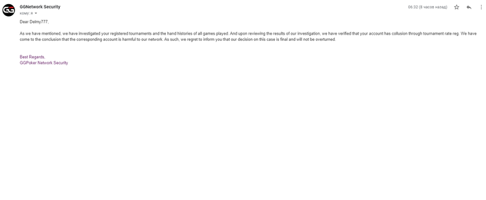 Прошу дополнительно провести расследование в отношении моей учетной записи на предмет нарушений правил рума. При необходимости, обязуюсь оказать помощь в расследовании.