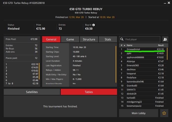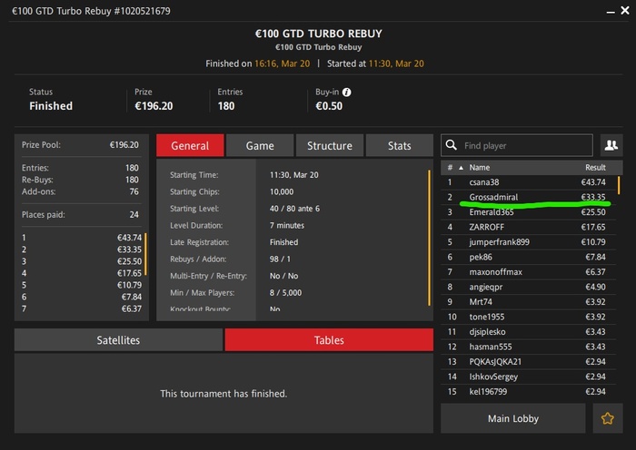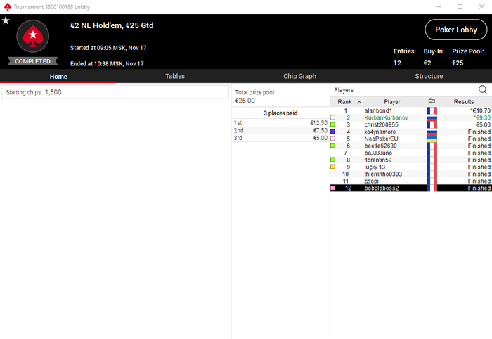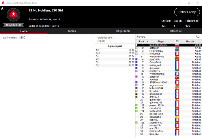 Буду ещё меньше играть турниры более, чем за 1$, максимум один в день, T$ билдеры за 0,5 ещё есть, забыл про них. Это я про ГГ.