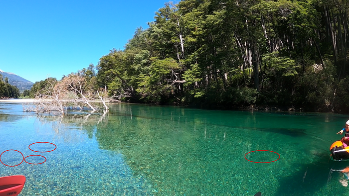 Маршрут пролегает по сети старых ледниковых озер и рек, без вулканического песка, пыли и продуктов таяния ледников. Вот так выглядит подводный мир одной из рек (стоп-кадр без фильтров и редакции с gopro 8)