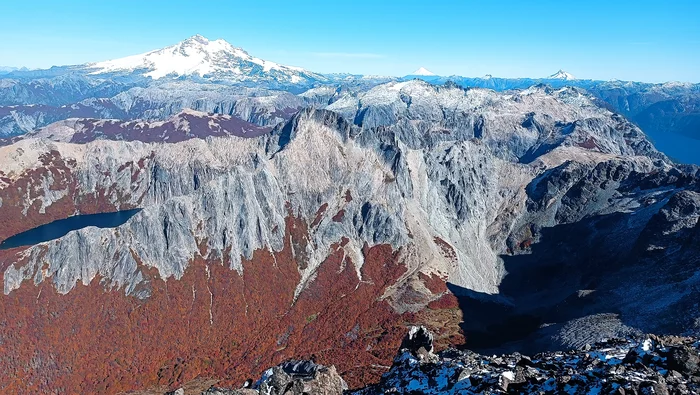 Точнее 2-й завтрак вокруг красоты. На запад посмотришь - гора Los Cabras (красная), за ней Lopez (со снегом) - куда нам подниматься во второй половине дня.