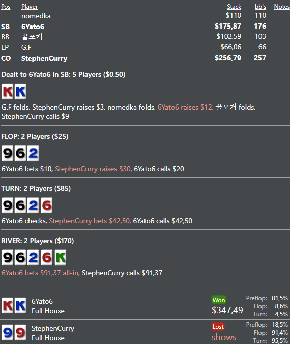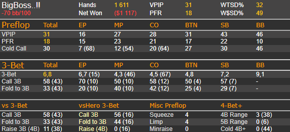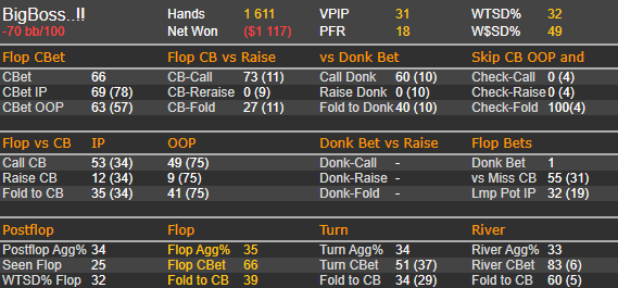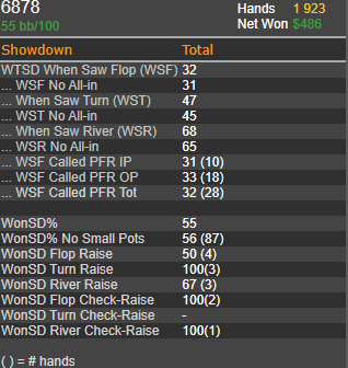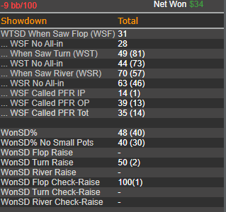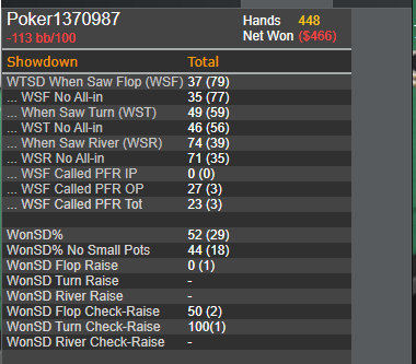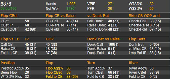 думал фолд у пп будет больше , а они почти всегда колятся с фд картой. почти все руки сильные и тптк с фд или с натс фд +6ов уходят больше в колл 60%,
