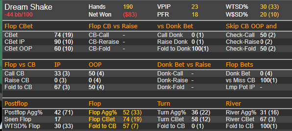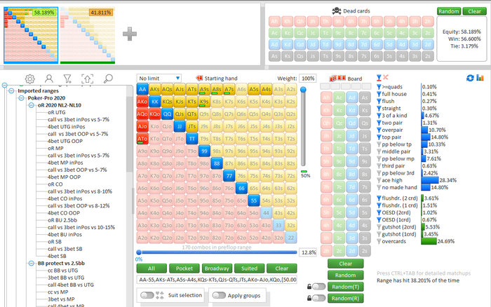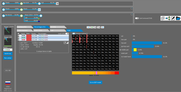 Rookee, Вообще я пытаюсь держать баланс между 33% и 67% , но главная проблема то что он не фолдит карманки ( раздача сыграна плохо) , в гто+ я ему залочил то что он оверколит