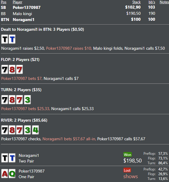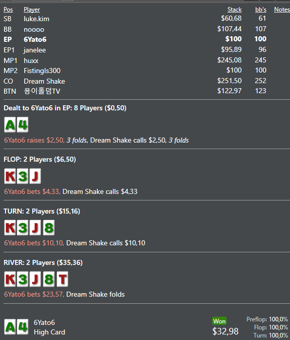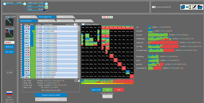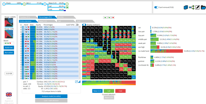 Ривер: думаю если он оверколит 2 пары и оесд оффсьют , то вообще тут доблефовывается наша рука 40%+.мидлы наверное оверфолдить будет