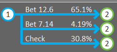 из-за сайза подумал что это мидл пара или слабый Kx , солвер конечно не предлагает нам минрейз, да и вообще рейз с нашей рукой, думаю чаще я увижу руки в колле лучше моей , поэтому даже то что опп такой это ошибка