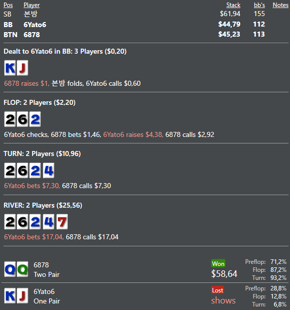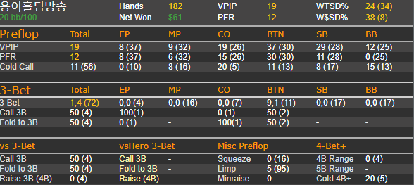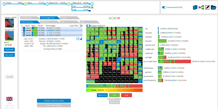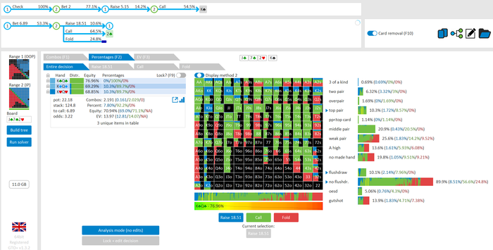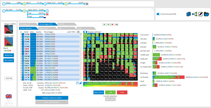 думал чек рейз тут будет больше 20-25%, но 18 тоже достаточно , конечно такая спекулитивная рука ,хз почему , но очень много моих решений - это меньшинство выбора.