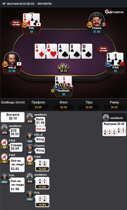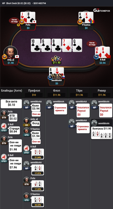 Шестерки - это одна из самых слабых рук в шордеке. Против двоих с любыми двумя ты поедешь в 25% в среднем. То есть ты будешь выигрывать из 4 раздач одну на дистанции. Против троих ты поедешь еще хуже.