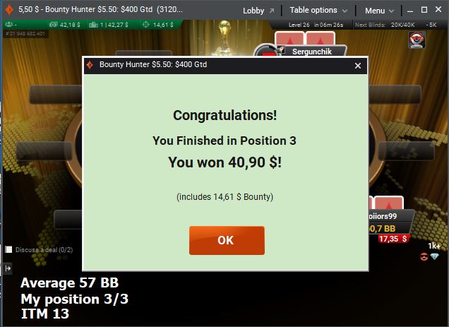 В ходе сессии: 20 турниров при загрузке $82.70 (АБИ 4,2); 2 ITM;