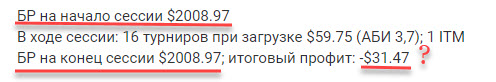В ходе сессии: 16 турниров при загрузке $75.55 (АБИ 4,7); 3 ITM;