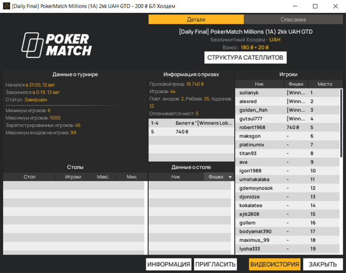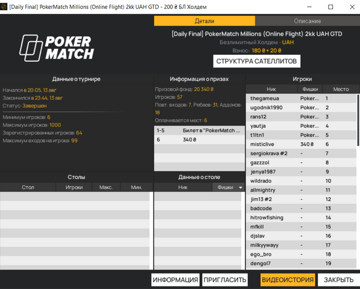 Напоминаем, что сегодня, 16 августа до 12:00 по Киеву вы ещё можете внести бай-ин в турнир PokerMatch Millions (1A) через клиент PokerMatch!