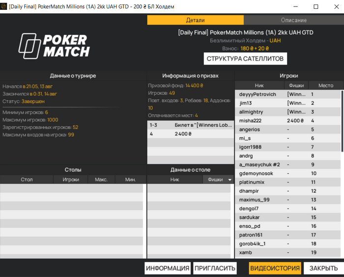 Финальный ежедневный сателлит стартует в 20:05 по Киеву.