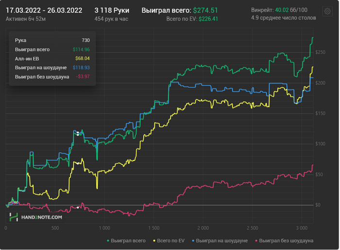 После перерыва связанного с войной, меня хватило еще на месяц покера. И под конец месяца, когда результаты упали, играть мне снова надоело, как бывало уже не раз. Выше я на этом не заострял внимание, но таких перерывов за мою короткую покерную карьеру было много, а играю я с 2018 всего то.