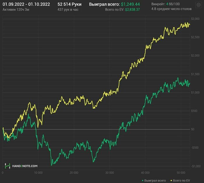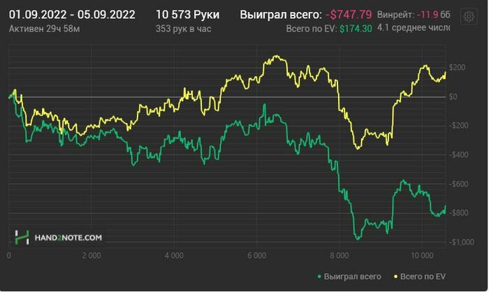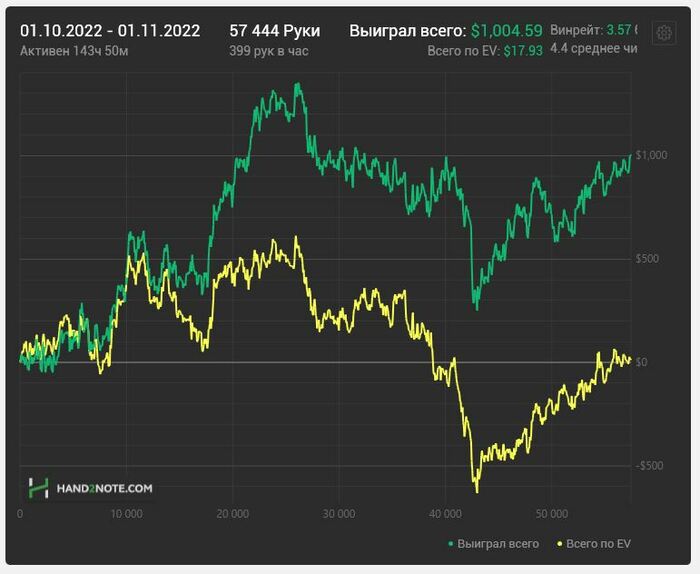 N-9, Да всегда ставлю цель примерно 50к, а там уже как получится. Стараюсь везде успеть просто и семья, и друзья, и велик) Практически никогда не отдаю приоритет покеру, поэтому я и играю всю жизнь nl50.