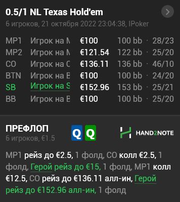 2 - не самая редкая ситуация. Ты прав, можно увидеть от треша до тузов. в 100бб я бы никогда не уронил, в 136, ну если у типа 3бет ближе к 0, тогда можно подумать, тк понятно что там верхушка часто в колд коле, если 3бет присутствует, то я бы и в 136 бб поехал. Хотя на ёбаном ред старе одни тузы в таком споте))))) на пати и старзах почаще видел треш или кармашки )