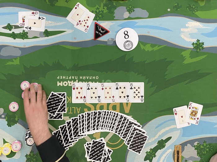 После нескольких лимпов Кользенов Амаду (ВTN) рэйзит 5,600, Бекпеева Айдана (SB) - олл-ин. Все пас, Амаду - колл.