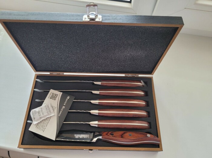 К слову к качеству большинства товара у меня претензий нет, а например этот набор ножей у меня вызывал эстетическое удовольствие, деревянные коробочки, острые ножи, все аккуратно уложено и упаковано