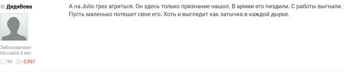 JohnnyHelp, ну ссылаться на слова какого то дядивовы с репой -3к, что бы лишний раз оскорбить Хулио, честно говоря такой себе аргумент