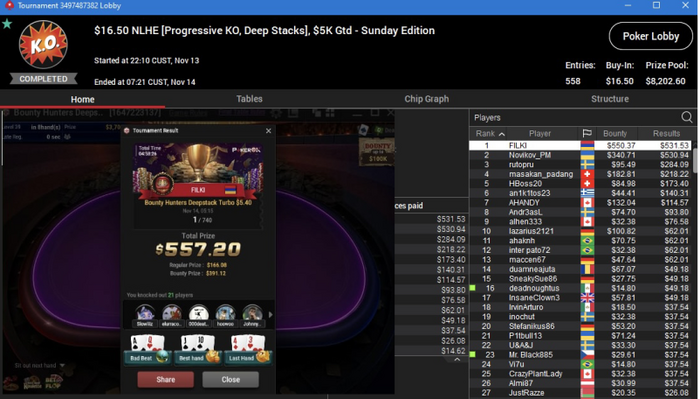 Дима pokermagic123 заносит воскресник ($21 Bounty Hunters Sunday Special) на GG