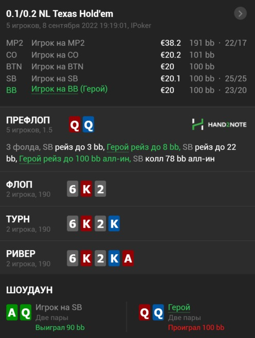 GranMaster87, ну когда я вывел оппа в 3бет поте на постфлоп с КК и не забрал стек, у меня закрадываются сомнения, что я сыграл неоптимально)