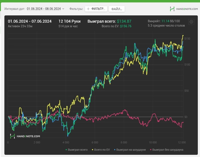 Первая неделя июня-так себе,играл мало и не особо заходило,но как есть