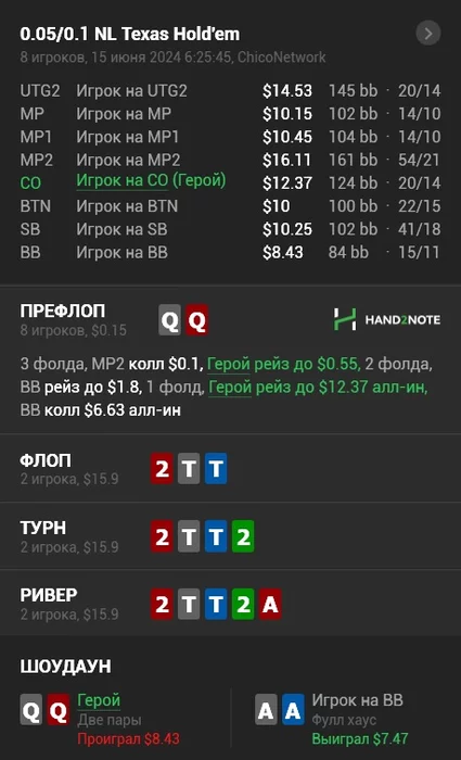 У игрока 3бет 2,капнулся конским сайзом,там блеф-3 бет только если он лицом в клаву упадет,просто сфолди,пох-пуш))Закономерно отгрузил стек