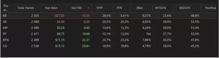 Глянул свои последние 15000 рук, бб пипец какая у меня заливная позиция, надо искать материалы и прокачивать свой скил на этой позиции. Раньше результаты были лучше, добавил количества коллов по чартам, похоже надо учить постфлоп в динамических позах. Если у кого есть ссылки на материалы по этому поводу, будут рад, если поделитесь.