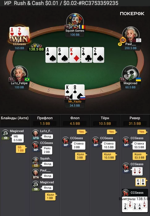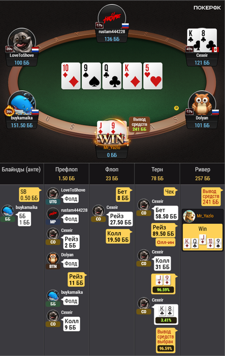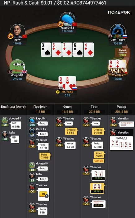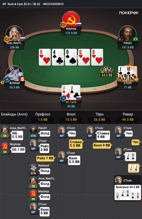 p.s. Skyalen, отдельное спасибо за совет на счет 3бета, увеличил его количество с поздних, легче стало играть руки, которые раньше коллировал, их стало проще выкидывать на 4бет и постфлоп после 3бета проще разыгрывать, инициатива у меня в этом случае.