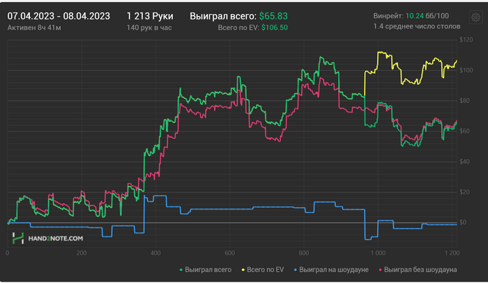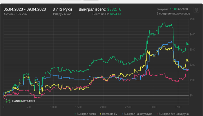 В целом игрой доволен, в один момент поплыла концентрация, из-за этого вовсе катал какой-то период один стол... После 12-ти столов это выглядит конечно так себе, но если перестаю думать над раздачами не загружаю больше столов.