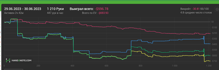 Когда я играл нл25, то график смотрел где-то раз в три месяца и это было отлично. Были стрики, но я не ощущал сильного дискомфорта в сравнении с последней неделей. При переходе на нл50-100 я понял, что тут можно уйти в -1к за пару сессий, поэтому решил контролировать процесс, что мне кажется и правда лучшим решением + разбирать раздачи (отмазка, ведь раздачи можно отмечать, что я и делаю регулярно).