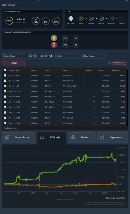 Забавно что EV у нас одинаковый. Перестал вообще туда садится как узнал что 1000би для лимита это минимум. Один чел показал сэмпл на >400к рук, и только 2 стритфлэш джекпота. Чистое бинго не советую. Играй в холдем, так как за проигранный или выигранный стек ты получаешь ещё хотя бы информацию. А аоф просто сухие слоты и никакой информации, просто пушат и переезжают на говне. Скукота. Но попробовать надо было)