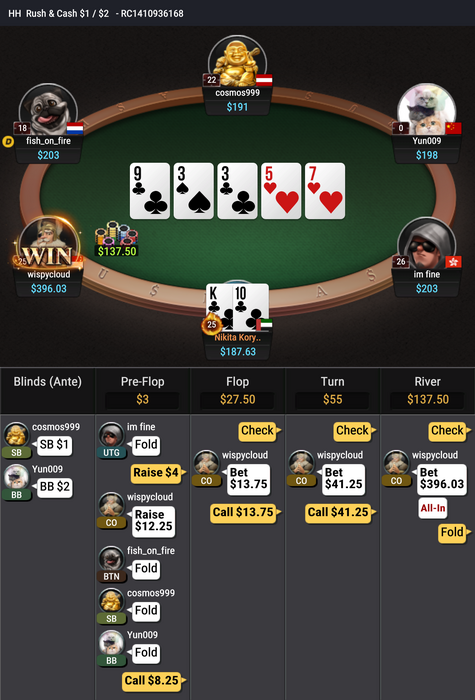 У меня очень сильная рука, но у оппа всегда чуть сильнее и он играет ее так по ублюбски, что просчитать руку вообще невозможно и я уезжаю на пол стека или стек)