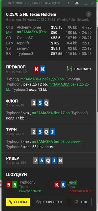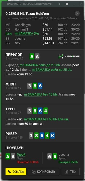 Сидишь мучаешься, там пиздец с нл50 начинается куча людей ввсф50+ и красная вверх, закрывая глаза на риверах жмешь коллы, нервничаешь, вроде получается не плохо, но регуляру нл20 это чуждо, на нл20 не существует блефпушей на ривере у 97% регуляров.
