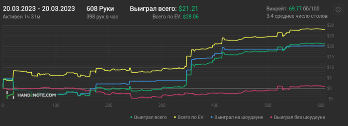 Привет, прочитал дневник, не понятно что все набросились на автора, видно же по графикам, что он доминирует над поляной, при таком винрейте ни одна диспа не страшна. Автору удачи и движения только вверх по лимитам, такие как он мотивируют учиться играть в покер, надеюсь и моя красная со временем будет похожа на твою)