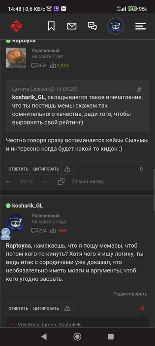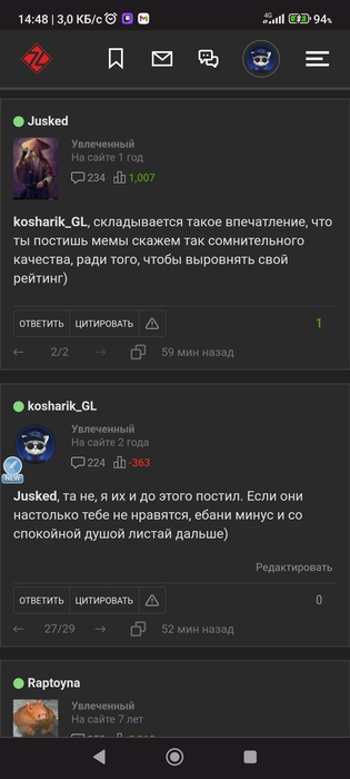 И если плюсы накидывают самые разные челы, то минусуют и терроризирует всегда одна и та же группа из +- 20 ников, ну может чуть меньше, но мнение которых всегда имеет более внушительный вес на форуме.