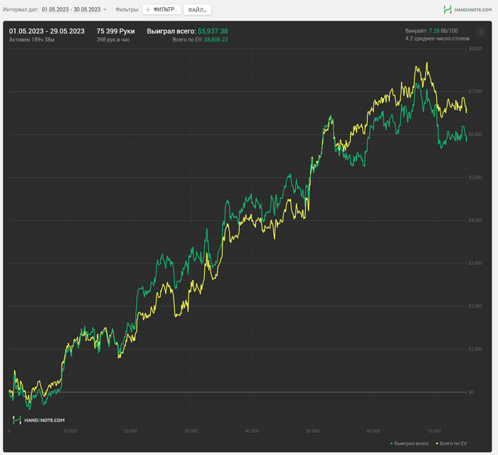 Отчет за вчера. Потрепало, играл плохо, видимо нить игры немного потерял, плюс немного кулеров, хотя так же возможно из-за усталости. сегодня отдыхаю.