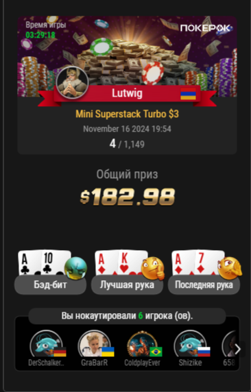 Месяц на покерке спасло мое желание полудить мтт. Сыграл где-то 15-20 туриков и 2 финалки: