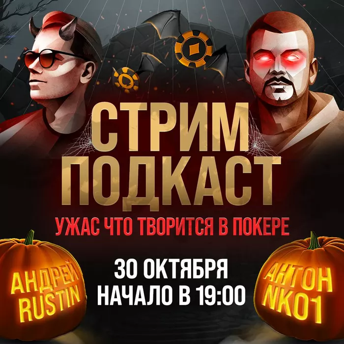 30 октября в 19:00 будет стрим на тему: «Ужас что творится в покере» с Антоном Nko1 и Андреем Rustin.