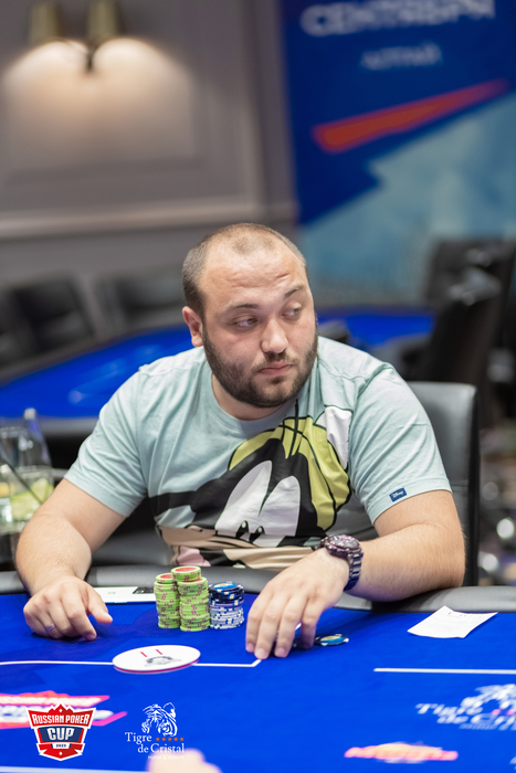 Забавно, что у Владислава после завершения периода поздней регистрации оставался самый короткий стек в 14,000 фишек (17 кушей), после следующей раздачи у него осталось всего 4,000 фишек (5 кушей), но дальше рубильник переключили, и Клепиков уверенно доехал до первого места.
