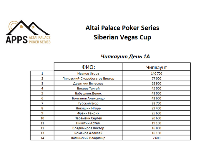 КУБОК СИБИРСКИЙ ВЕГАС, Д1В. Уровень: 6, блайнды 200/500/500, в игре 42/64.